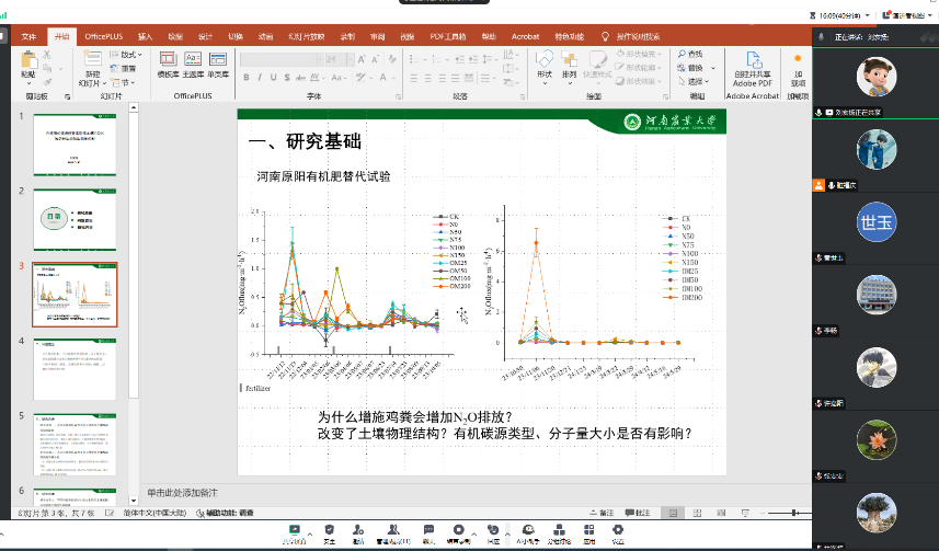 1月23日下午,农田生产力绿色调控与功能性肥料科技创新团队采取线上形式开展基金论证。韩燕来教授对李世莹和朱学强两位青年教师的汇报给予指导,强调要结合国家战略和区域特征,突出创新性。团队成员就基金题目、科学问题等提出建议,提升了申报书质量。